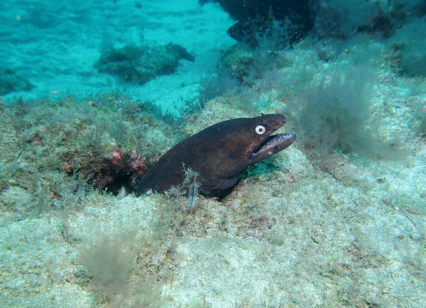 - Busca grandes bancos de peces, caballitos de mar, rayas y angelotes.
